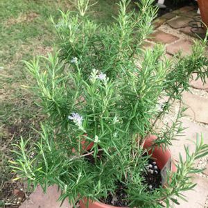 ローズマリーに花が咲きました! 嬉しい😆 ローズマリーの効能は記憶力アップ。呆け防止にも良いそうです。受験生は、ハンカチに葉を挟んで試験前に嗅ぐと良いとか😃 私には最適なハーブです😂