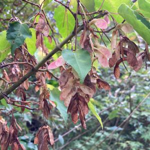 おはようございます😊 いつもありがとうございます♡ いつもの散歩道🚶♀️🚶♀️🚶♀️ ウリカエデの種がぶら下がっていました🤗 2025.11.14 📷️