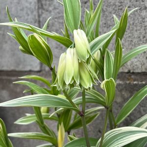 庭の日陰で 斑入りホウチャクソウが咲き出しました 💚🤍💚🤍💚🤍💚🤍💚🤍💚🤍