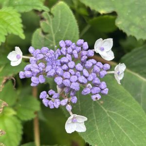 山沿いにある小さな沢で たくさんの玉アジサイを見かけ… 蕾から開花したコに集まって貰ったよ💜 『タマアジサイ』玉紫陽花 アジサイ科 別名・ヤマタバコ(山煙草) 蕾が玉のように見えることからタマアジサイと名付。 蕾の直径は2~3センチで、いくつかの「総苞」に覆われるが、開花と共に総苞は脱落して花が現れます… 開花は7~9月で花は装飾花と両性花からなり、花序(花の集り)全体の大きさは直径10~15センチほど。より目立つ白いのが装飾花で、本来の花は紫色の部分です 別名の「ヤマタバコ」はかつてタバコの代用品や混ぜものとして使われたことにより。 🏷️シックな水曜日 🏷️水曜日は水色