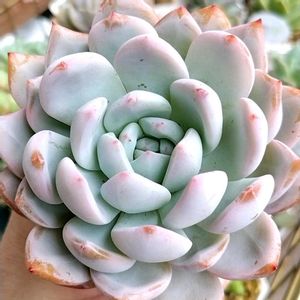 外壁塗り替えで殆どのエケさんが緑化したり徒長しましたが 流石お粉系は強かった😺 エケベリア・オレンジモンローさん😻🤍🩷 別名のコも含めて4頭いるのは お名前違いのお迎えミス1 何故かプレゼントで貰う確率が高い2…で増えました😸 どのコも元気ですが 現在唯一花芽ちゃんが可愛かったのがこのコです😺 4頭中一番のおちびさんなのに 他のエケさん達より一回りデカいのは流石ですな…🐱💧