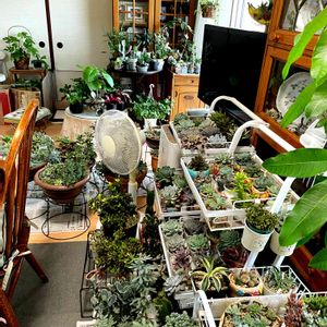 大型台風が来ると言うので 一時避難の多肉たち…。 多肉部屋になりました( ;∀;) 外に出すのも一苦労!! ついでに整理できたけどっ^ ^