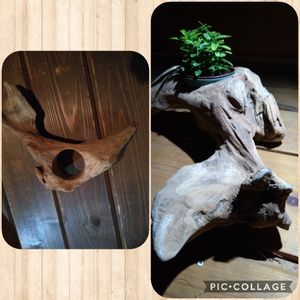 こんばんは😔 思いつきで流木に穴を開けてポットをインしてみました😅😤