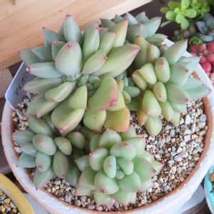 この色に惹かれてお迎えしたアイボリー🍀 色も素敵だけど、このむちむち感も好き😊♥️ その時の気分なのか、好みの多肉ってどんどん変わりますよね。 んで1周回って結局全部好き。ってなるんですけど(笑)、今はツルツル系がお気に入りです😊💕