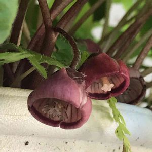 フタバアオイ 普段は、うつむいて咲いてます。 ちょっと中を見せてもらいました。