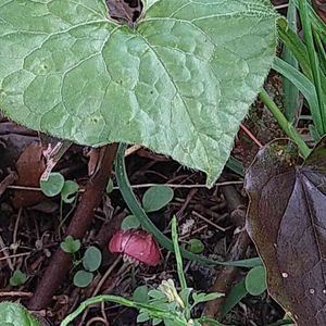 フタバアオイ・山野草です 葉っぱの下の隠れるようにして咲いている赤い小さな花を見つけるのは知っていないと難しいです。
