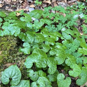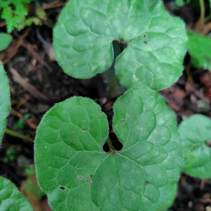 ①〜③フタバアオイ ウマノスズクサ科カンアオイ属 多年草 花期3〜5月 在来種 北海道〜九州に分布 山地の林内に生える。 和名は茎の先に2個の葉を付けることから。 徳川家の「葵の御紋」はこの葉を3枚組み合わせたことで有名である。 また、別名は京都の賀茂神社の「葵祭り」に使われることに由来する。 花は1個だけで、直径1.5cmの椀形、紫褐色で下向きに咲く。 葉はハート型で基部が円形にくぼみ、光沢があり、葉脈以外にも毛がある。 ④⑤ウスバサイシン ウマノスズクサ科カンアオイ属 多年草 本州中部地方、関東地方、中国地方に分布 山地のやや湿った林下に生育する。 花期3〜5月 草丈10〜50cm 葉は直径5〜8cmで質は薄く、味が辛いことが名前の由来である。 花は直径1〜2cmの釣鐘形で1輪ずつ咲く。 葉柄の付け根近くに隠れるように咲くのが特徴である。 🏷️8日は葉っぱの発表会 に参加させていただきます。