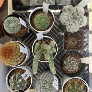 突然サボテン沼にドボン! DAISOで爆買い、ヤフオクでもお迎え、そして近所のホムセンで珍しく凄く状態のいい子たちが入荷したてだったのでザクザクお迎え! みんな可愛い〜 ①ホムセンお迎え株 名前覚え切れない…… カルメナエ欲しかったから、オレンジ色のと白い群生お迎え出来て幸せ! オレンジ色の方は蕾の気配。 ②DAISO、ヤフオク苗 ロビビアのシックな色味好きだなー。 一部寄せ植えにしてみた。謎土はがしきるためザブ洗ったけど、今のところ大丈夫そう。 ③こんなにあるのにどうするの…… ④日の出丸の茶巾絞り感可愛い🥰 ⑤白星にお花が🌸可愛いクリーム色
