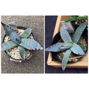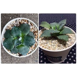 アガベ 吉祥天❓吉祥冠❓違いがわからない🤔 右10月に吉祥天だと思うと投稿した子 現在葉数が増えましたが、なんか葉がベタっとしていて形が悪い😓かっこよくなります様に🙏