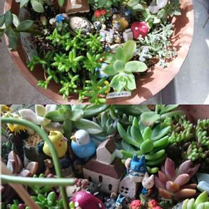 右は2015年11月にギャザリングで寄せたタブロー💕左現在 1度配置を変えただけで長持ち❣️ 水やりの時たまに液肥を混ぜるだけ(年3〜4回)多肉の生命力凄い❣️ エケが入っていないので地味ですがお気に入りです💕😊 今週は玄関に飾っています😄