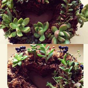 こんばんは😃🌃 母の日に初めて作ったリースのその後です~😱 この画像は出来立てホヤホヤの状態の時のものです🎵右側が母にpresentして、左側は自分用で手元にあります。 結構無事なのと、コケサンゴなんかはいなくなりましたが今週末にでも、延び放題やんちゃになったものを整理してbeforeafterでアップしますね~😅 どうなるやろ…(  ̄▽ ̄) beforeもきっちりお見せしま~す😆 お疲れ様です💓♥️❤️