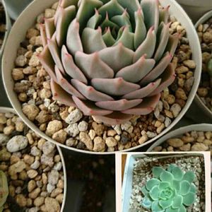 連日暑いですね34℃☀暑中見舞いは早いですか…? 右上花屋の隅でハオルチア溶けてたけど連れて帰って右下と左に植替えてみたよ😉 少しはマシかなぁ💕