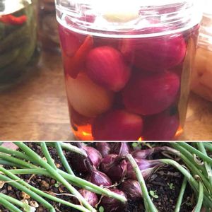 ミニ玉ねぎはピクルスに。赤はかわいい〜 白い方は煮たり焼いたりしてじわじわ食べます(笑)