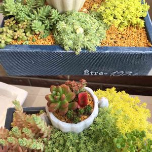 去年の10月に多肉の見切り品コーナーにあった名無しちゃん。 育てていくうちに、スマロさん?と思ったものの、弱り過ぎていてほぼ全て葉挿し状態で中々育たず…😢 まだまだ小さいですが、ようやく育ったなぁと思える姿になりました✨