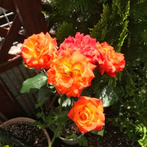 炎のようなオレンジと赤のグラデーションのバラのカリスマ。第二陣が咲きました!