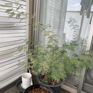 鉢植えのアカシアデアネイ 四季咲きのミモザなので、ずっ〜と咲いてくれてます🥰