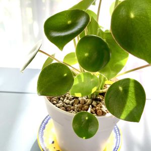 まんまるの葉っぱが可愛い ペペロミオイデス なんかね… 縮れたような 歪んだ葉になってしまって 可愛くなかったんですよ(´・ε・`) 陽当たりが悪かったかなぁ と 場所を変えたら また 可愛くなりました♡(о´∀`о)