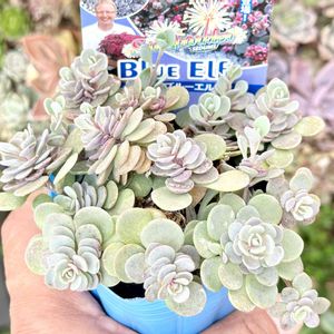 ★ブルーエルフ どうも♪ 長いので前置きなし。 本日はブルーエルフ♪ 2015年米国グレートガーデンプランツ社の サンスパークラーシリーズから、 超耐寒性ハイブリッドセダムとしてリリースされ、 セダム ブルーエルフとして流通しています✨ 当初はセダム属とヒロテレフィウム属との 世界初のハイブリッド!の謳い文句で、 ラベルも「セドロ ブルーエルフ」になってましたが、 実際に交配されたのはセダムではなく、 オロスタキスとの交雑だったため、 セドロという新たな属名は却下されたそうです(笑) もちろん属間交配なので、 ハイブリッドセダムなら間違いではないですが、 単なるセダムではありません😅 正しくはミセバヤ類のヒロテレフィウム属と、 イワレンゲ類のオロスタキス属との交雑種なので、 xHylostachys(ヒロスタキス)という新たな属名に‼️ 以後ヒロテレフィウム×オロスタキスの交配種は、 このヒロスタキスの属名が使われるはずです😁 んじゃ逆交配は?オロテレフィウム?🤔 さすが超耐寒性とうたわれているだけあって、 氷点下でもビクともしませんでしたが、 ミセバヤ同様、冬はしっかりモードチェンジして、 越冬芽の姿になって越冬します✨ サンスパークラーシリーズといえば他にも、 ・ファイヤークラッカー ・ライムジンガー(ジンジャーではない) ・ダズルベリー などが超耐寒性セダムとして流通しています。 これらはブルーエルフ作出の試作段階で出来たものが 個別に品種化されたものなのかもしれませんね🤔 -∴-∵-∴-∵-∴-∵-∴-∵-∴-∵-∴- xHylostachys 'Blue Elf' ヒロスタキス 'ブルーエルフ' 和名 なし 別名 超耐寒性セダム セダム ブルーエルフ セドロ ブルーエルフ シノニム Sedum hyb.'Blue Elf' xSedro 'Blue Elf'