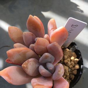 葉挿し から育ったお肉 何の葉っぱだったか すっかり忘れていたけど ここまでくるとやっとわかった どうやらピンクマーブル みたい うちでは、幹立ちして 成長点から花芽が上がって いつの間にかいなくなっちゃう とほほな多肉さん