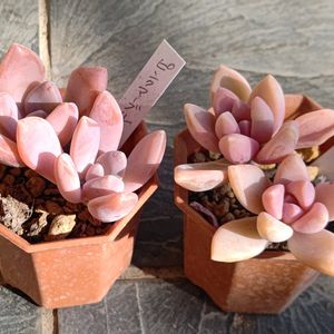 多肉植物をメインとするイベントに 初めて行ってきました 名前だけでは 属名とか、変化とか、 まるでわからない🔰で 完全、見た目重視で選びました😹 この全体的ピンクを維持する自信はまるでありませんが、 出会いに感謝して💟 一生懸命育てたいと思いまーす