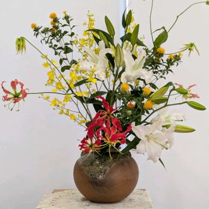 研究会のお稽古でした! 花奏。 クロスする部分がメインなので足元のお花の量は少なめに。