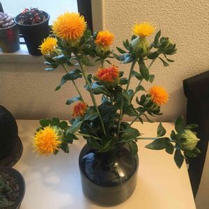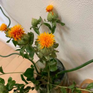 おはようございます☀ 職場に癒しを🌸 連休前 紅花 今日は朝摘した我が家のお花