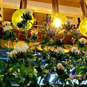 クリーム色の紅花どっさり💛 あざみみたいだなぁ~って、上ばかり 見とれてたら、ガラスの花びん撮りわ すれて帰ってきてしまった😅