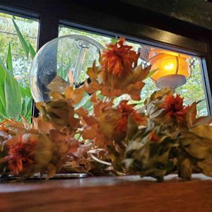 オレンジ色の紅花ドライ🟠 窓越しに見える、外のユッカと葉桜の 美しいみどりにも癒される夕暮れどき でした🌆