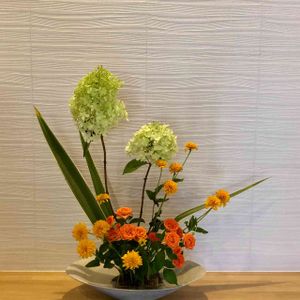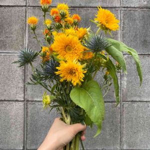 小さな花束をいただいたので、こじんまり生けてみました。 まだまだ暑いですね。 ご自愛ください😊