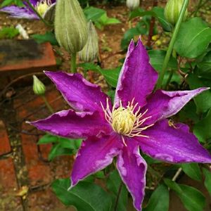 雨の朝 初めてクレマチスが咲きました 青空の下で撮りたかったなぁ