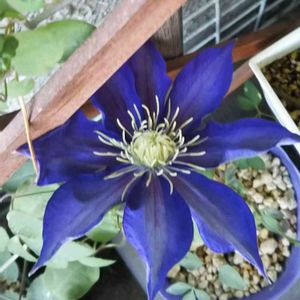 クレマチス白王冠。 スマホで撮ると、こんな色だけど ほんとは、もっと紫っぽい紫。 挿し木3年目くらい。 挿し木好きの母にもらいました。 私と同じくおおらか?大雑把?な性格の母。 挿した後、品種が分からなくなることも多くて 咲いてみて初めて 「ああ、白王冠さん」と判明。