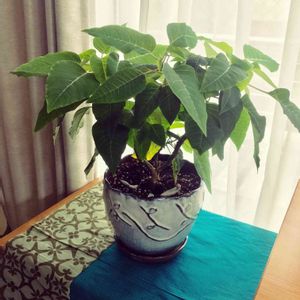 先日出来たばかりの鉢に、去年瀕死の状態だったポインセチアが元気になってきたので植えました。
