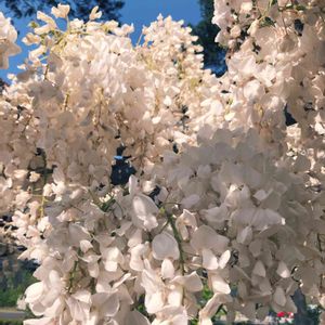 こんにちは、月曜日になりました 今週もよろしくお願いします😊 今日のお花、藤 紫の藤の時期は行くことができなくて私が行った時は白い藤が咲いているだけでした😢 ①藤棚の白藤 ②蜂さんが蜜を集めに来ていましたが怖くてあまり近くに行けませんでした💦 ③ツツジにも蜂さんが🐝😱 ④⑤人があまりいなかったので鳥さんもお散歩してました