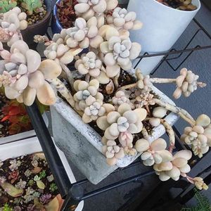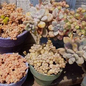 以前投稿した謎肉 だるま秀麗のようです‼️ 手前の葉っぱ真ん丸の長年居るだるま秀麗☝️ も、過去pic見ると葉っぱは長かった😅 肥料上げない我が家ではドンドン小さく、、、😂