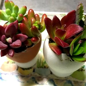 お友達がプレゼントしてくれました😊 多肉を玉子の殻に寄せ植えするのかわいい💕私も作ってみようかな🎵
