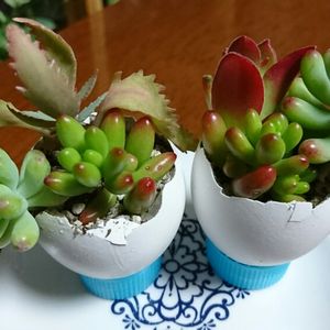 イースターに間に合った? 初めてたまごの殻に多肉ちゃん植えてみました。