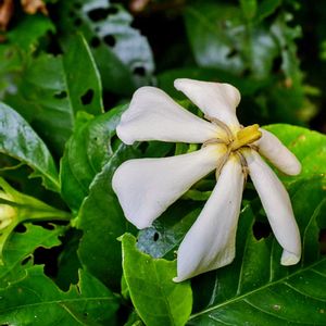 ᰔᩚ ᥫᩣ 今日のお花 クチナシ 7月に咲いたときのもの 香りは強くないけれど 近づくと甘いいい香りです ( *¯ ꒳¯*)クンクン♡♡