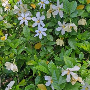 💐今日のお花💐 🌼クチナシ🌼 春に咲いていたものです(*^^*) 残念なことに今は咲いていません(¯―¯٥) 八重咲きなのでクチナシの実は出来ません😭 なぜ八重咲きには実がならないのでしょうか🤔