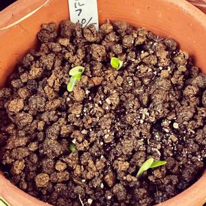 5つめ芽🌱がほんのすこぉし のぞいています。発芽100%でした✨ ここから先の育て方 調べないと🔍