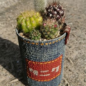 デニムリメ缶 なかなか ええ感じやし 作るの楽しい サボテン合う