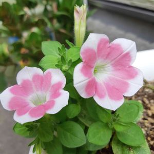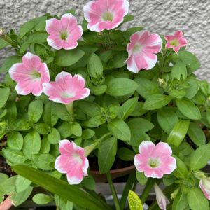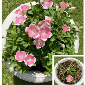 サフィニアアート🌸ももいろハート💓 残念ながら満開にはならず、徒長気味なので切り戻しま〜す (´・ω・)✂︎🪴