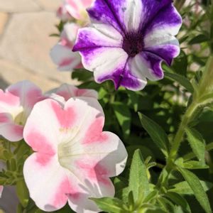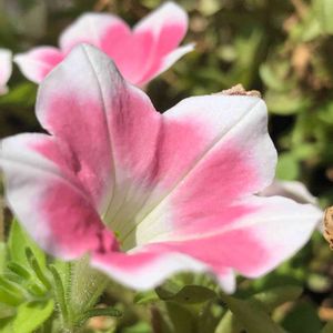 今から台風が最接近するみたい😱💦💦 それに備えて鉢を移動したりしたけど、この2鉢はお花を守る為に室内へ! サントリーフラワーズ サフィニア アート「とらネコ」・「ももいろハート」 とらネコの方は6号のプラ鉢 ももいろハートの方は8号の素焼き鉢 私にはとらネコの方が育て易いかな😊と思います! とくにピンチしなくてもこんなふうに綺麗に纏まってくれてます❤ ももいろハートはひと癖ある… とお見かけしていたように、なかなか難しい💧 印象です! 蒸れやすくて、すぐ下葉が黄色くなる気がするし… 綺麗な模様を維持するのも難しいかも… どちらも初チャレンジなのでよく分からないけど😅