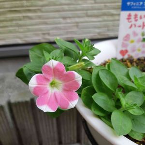 寄せ植えの隙間に挿し芽で育てていた苗を植えていたのですが、何の苗かわからなくなっていました💦 そして、今日咲いていたお花を見て、サフィニアアートももいろハートちゃんだったんだ〜💕💓とわかり なんだか嬉しくなりました🥰