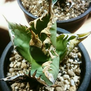 agave titanota ® まだ発根確認出来ないし下葉を2枚もっていかれたけど… 色も張りも良いので調子は良い😊👍 明日から晴れるのでまた外管理💡