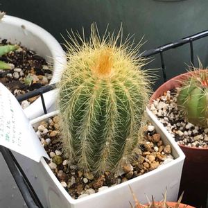 🌵きょうのさぼてん🌵 パロデイア(旧エリオカクタス) ワラシー てっぺんの蕾が、この二、三日で急激に膨れてきて今日開花しました✨ へんてこなワラシーですが、花はきれいなイエローで可愛いんです👍🎶 今年花咲くワラシーはこの子だけかな🤗