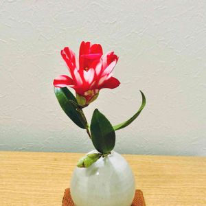 お名前がわかりません 上のは椿系かと思うのですが🤔 下のはスイセンのお仲間🤔 わかる方教えて下さい🙏(´∇`)♪ 孔雀椿とペチコート水仙でした