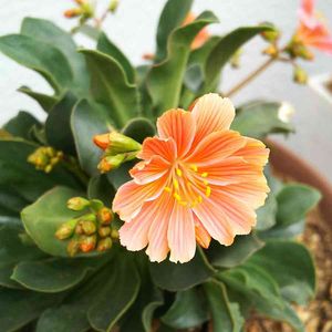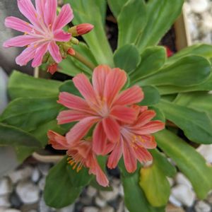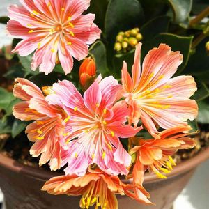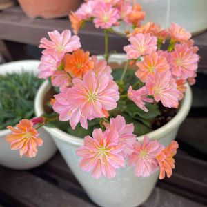 おはようございます😊 花芽が上がって花数が増えたレウィシア✨ピンクとオレンジが混ざって可愛いなぁ💗🧡💗🧡