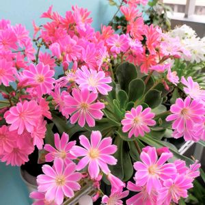 レウイシア 可愛く咲いています 白と黄色は、お花終わりました ピンク色が、遅れて咲き楽しめます🌸