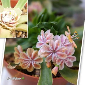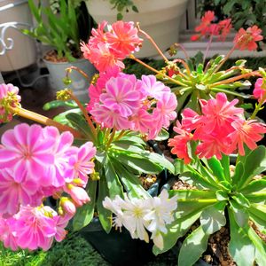 レウイシア 🌸華さんご🌸 沢山ある中からサーモンピンク系を選びました。ピンク💗に近い色からオレンジ🧡に近い色まで花毎に色が微妙に違って面白いです💕 この花はピンク色に近い花です。小さめの寄植えの中で頑張っています❣️