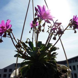 ハンギングの鉢に入れて 物干し竿につりさげていた レウイシアさん 寒さにも風にも負けず 葉っぱも 段重ねのパンケーキ みたくボリューミーに(ʘωʘノ)ノ